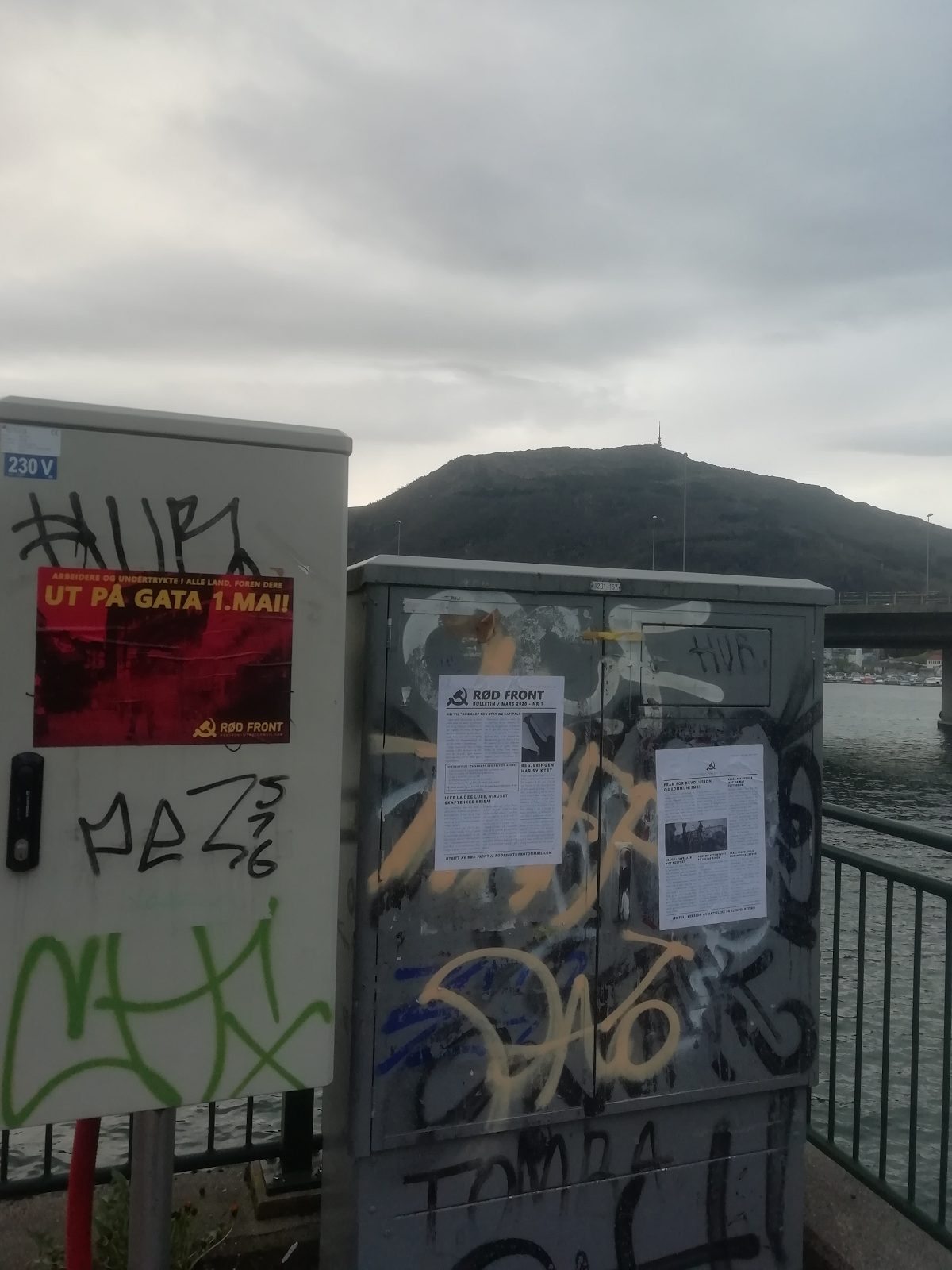TFM har fått melding om Rød Front-bulletiner og plakater observert i Bergen nord og i sentrum. Observert før 1. mai.