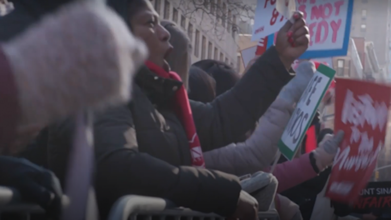 A Nova Democracia skriver at over 7000 sykepleiere i USA gikk ut i streik 9. januar. Sykepleierne protesterer, med streikemarkeringer foran sykehusene og blokkering av veier, for bedre arbeidsforhold på de to største sykehusene i New York.
