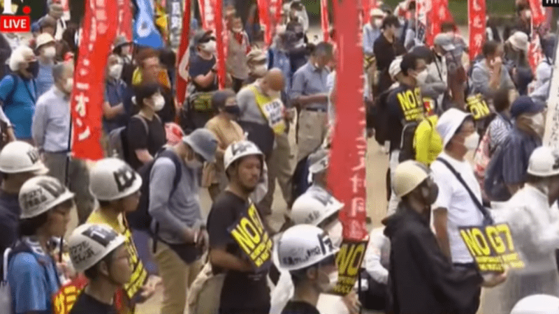 Kameratene våre i A Nova Democracia skriver at 19. til 21. mai protesterte hundrevis av japanere mot det imperialistiske G7-møtet i Hiroshima.