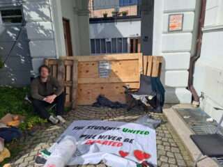 Etter en dag med blokade av rektors kontor, uten å ha fått noe svar på deres krav, har studentene ved Universitetet i Bergen trappet opp sine aksjoner. Nå har studentene barrikadert inngangene og okkupert kontoret. De sier at de ikke vil gi seg uten at UiB-ledelsen godtar kravene deres.