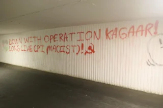 De danske kameratene våre i Røde Fane skriver at det er satt opp slagord til støtte for folke-krigen i India utenfor København.
