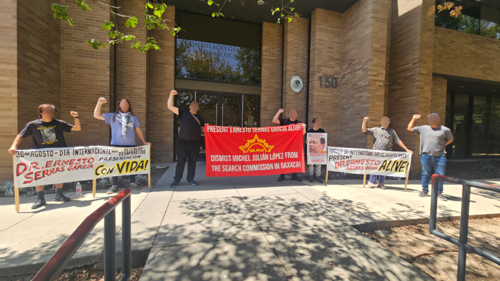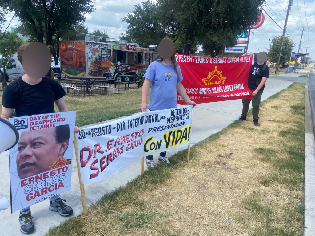 Aktivister fra Arbeidernes Støttekomité Austin, Det er rett å gjøre opprør San Antonio og andre organisasjoner holdt en demonstrasjon utenfor det meksikanske konsulatet i Austin, Texas, og krevde at Dr. Sernas blir presentert i live.