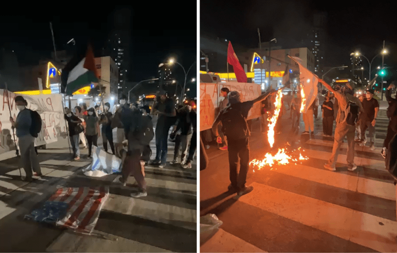 I Recife rapporterte aktivister om mye politiovervåking under demonstrasjonen, som inkluderte et helikopter som patruljerte området. Hele gata der USAs konsulat ligger, var okkupert av militærpolitiet. Under marsjen holdt demonstrantene opp et banner signert av Antiimperialisk Forbund der det sto «Palestina gjør motstand, Palestina vil seire!», mens de ropte slagord. Da de nådde gata der konsulatet ligger, brente aktivistene flaggene til USA og Israel.