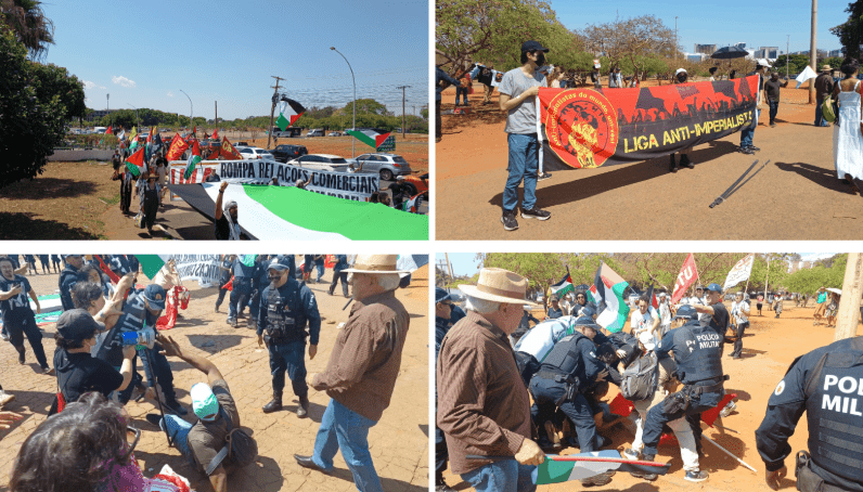I hovedstaden Brasília holdt sosiale bevegelser og palestinske solidaritetskomiteer en stor demonstrasjon foran USAs ambassade. En mengde palestinske flagg og et banner fra organisasjoner som Antiimperialistisk Forbund ble heist under demonstrasjonen. Militærpolitiet angreip demonstrantene med tåregass og batonger, og flere ble arrestert. Politiet påsto at de greip inn fordi en aktivist bar kniv, noe som ble avvist av resten av demonstrantene, som umiddelbart forsvart aktivisten og fordømte dette som en provokasjon ment for å splitte og avslutte demonstrasjonen. Demonstrantene rapporterte også at de så noen fra ambassaden gi instrukser til politiet.