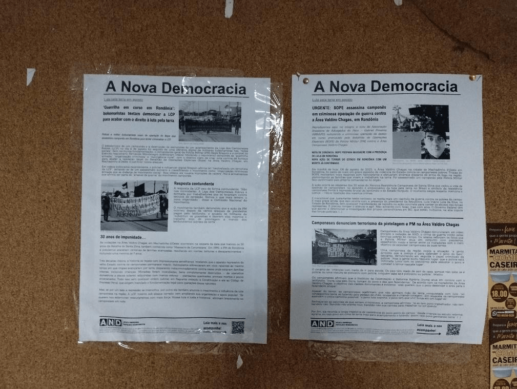 Vi deler noen av den siste ukas nyheter fra kameratene våre i A Nova Democracia, om kampen for jord, kamp mot politivold og solidaritet med den palestinske motstandskampen.