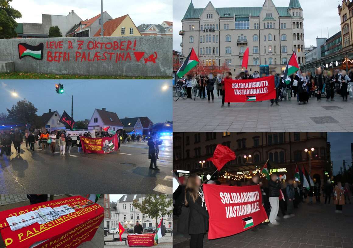 Våre kamerater i Punalippu og Røde fane har publisert om aksjoner og markeringer i anledning av 7. oktober. Vi har oversatt og laget et sammendrag av dette. Alle feil i oversettelsen er våre egne, og vi anbefaler å lese deres saker i sin helhet.