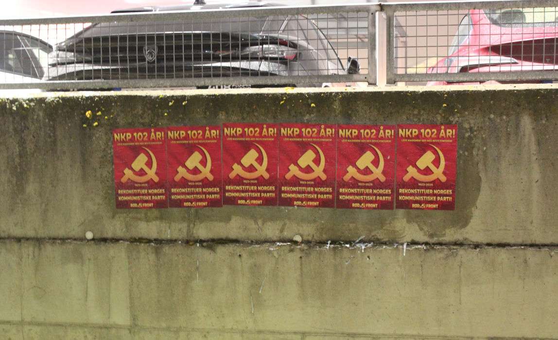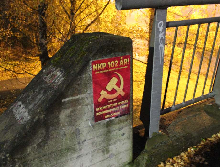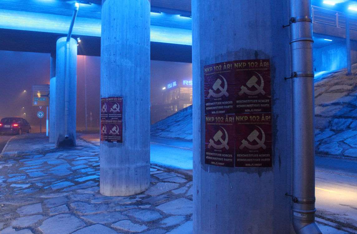 Tjen Folket Media har mottatt bilder av plakater satt opp i anledning at Norges Kommunistiske Parti ble stiftet for 102 år siden, 4. november 1923.
