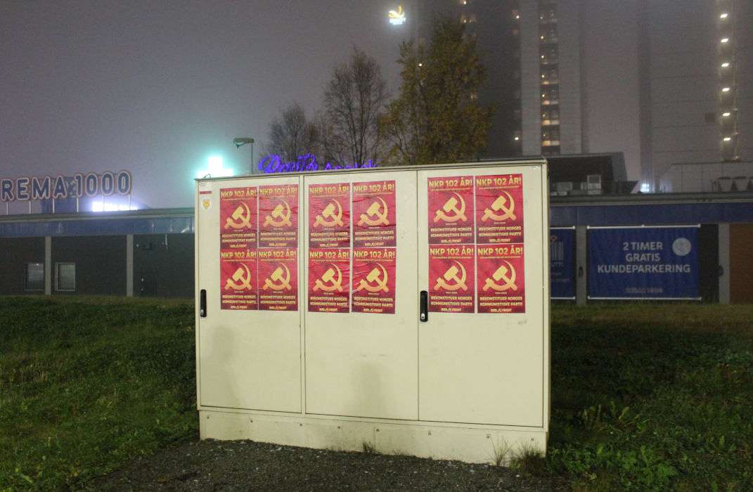 Tjen Folket Media har mottatt bilder av plakater satt opp i anledning at Norges Kommunistiske Parti ble stiftet for 102 år siden, 4. november 1923.