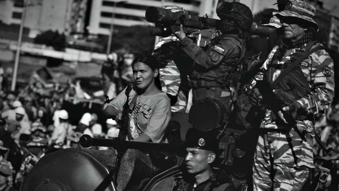 Bilde: «Bolivariske militser» går ut i gatene på dagen for det yankee-imperialistiske angrepet mot Venezuela.